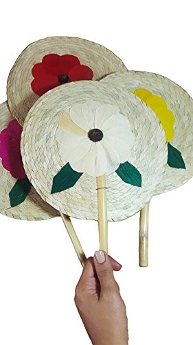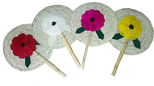 13’’ Palm Hand Fans, 4 Colors Pack Palm Leaf Hand Fans, Bundle Decorative Handfan, Wicker Floral Fan, Fiesta Party, Floral Handfan, Handmade Palm Fans, Perfect Wedding Favor Fans,