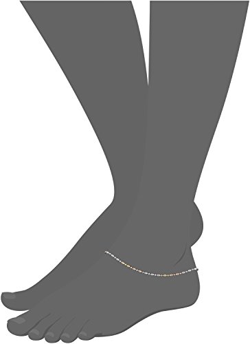 Sterling Silver Italian Tri-Color Diamond Cut Oval and Round Beads Mezzaluna Chain Anklet, 10"