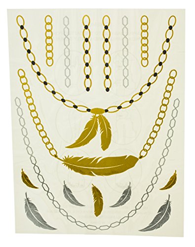 Metallic Temporary Tattoos Feathers & Chain Set -Single Sheet Assorted Styles Bracelets, Necklaces, and Popular Symbols