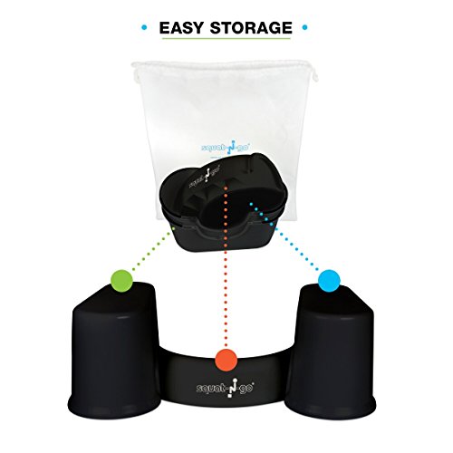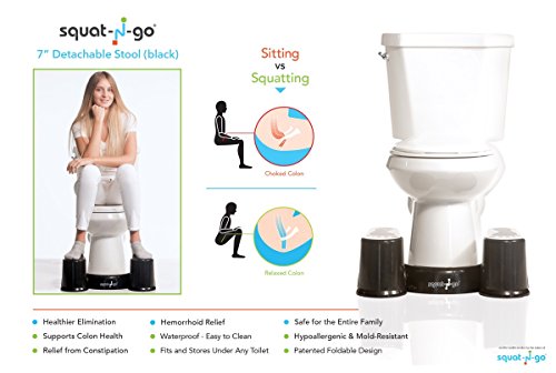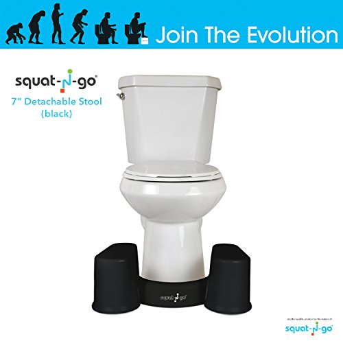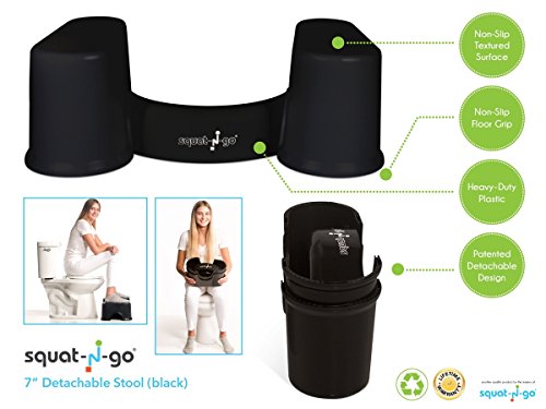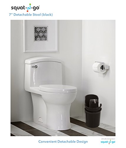 Squat N Go Space Saver Toilet Stool | The Only Detachable and Compact Bathroom Stool | Free Travel Bag | Free Bathroom Guide | 7" Fits ALL Toilets | BLACK |