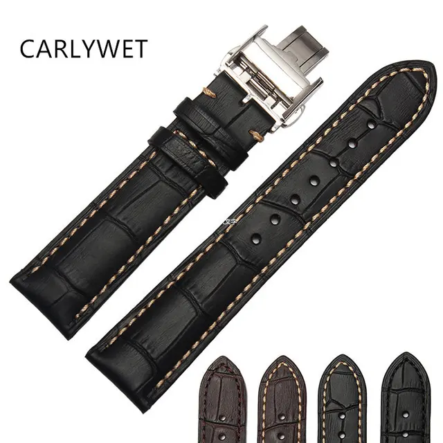 | [해외] CARLYWET 18 19 20 21 22 미리메터 남자 레이디 진짜 송아지 가죽 수제 블랙 브라운 스티치 손목 손목 스트랩 벨트 실버 버클 |