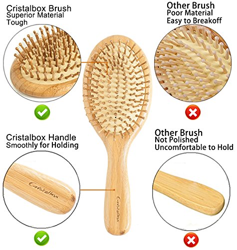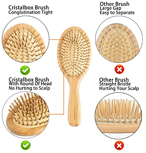 RELEASE CONFIDENCE: Cristalbox bamboo brush distribute hair’s oils down the hair shaft, and eliminate dandruff. Making hair shinier, glossier, smoother and more radiant.
