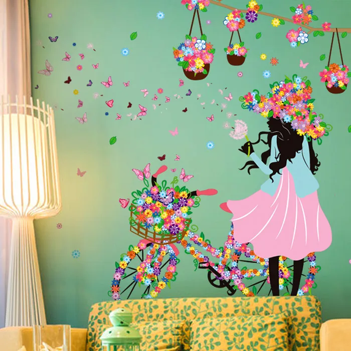 Content:Creative Flower Fairy Girl Wall Stickers