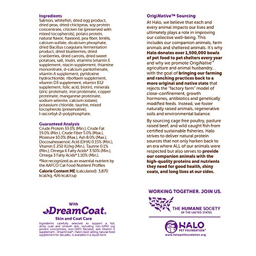 -. Title : Halo Holistic Dry Cat Food for Kittens, Wild Salmon and Whitefish Recipe, 6 LB Bag of Natural Kitten Food