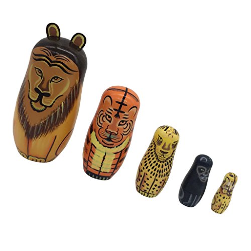 -. Title : MonkeyJack 5PCS WOODEN RUSSIAN NESTING DOLL MATRYOSHKA DOLLS PANDA LION ANIMALS PAINTED