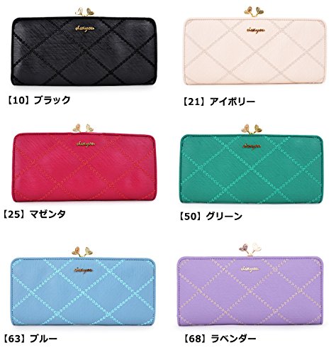 -. Feature : ■約W20×H10×D3cm 重量:約230g / ■【10】ブラック 【21】アイボリー 【25】マゼンダ 【50】グリーン 【63】ブルー 【68】ラベンダー / ■本体:合成皮革 裏地:ポリエステル / ■口金式開閉 内側:札入れ×1 小銭入れ×1(仕切りあり) カード入れ×13 フリーポケット×2 / 専用BOX