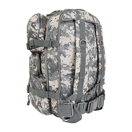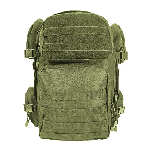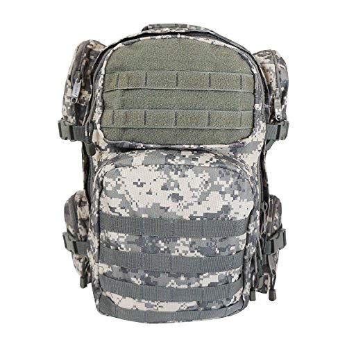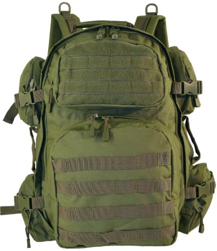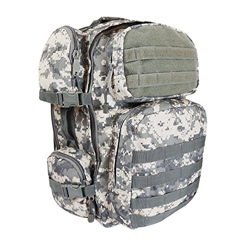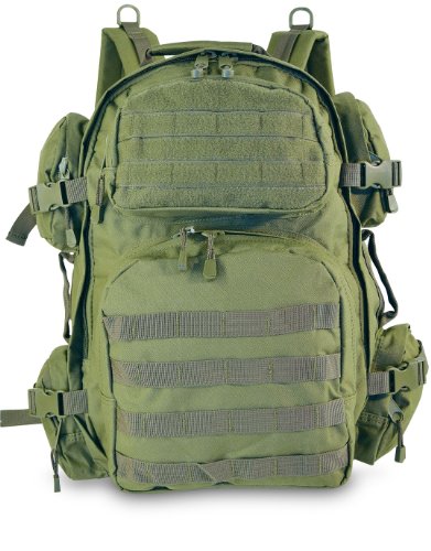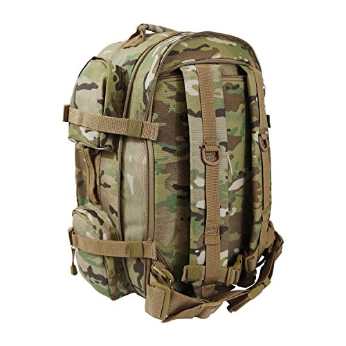 Studio : Military Outdoor Clothing Publisher : Military Outdoor Clothing Binding : Sports Product Description The EDC Tactical Barrage backpack has one large compartment, six pockets, and three handles, making it a great backpack for storing and organizing your stuff. It also has one hydration water bladder pocket. The two back straps are padded and adjustable, and can be hidden inside. M.O.L.L.E straps on front and bottom allow for endless carry possibilities. This backpack can even expand an additional 3 inches, if you happen to have filled it to the brim. This is a high quality backpack well suited for all of your weekend excursions, airsoft or paintball gear or as a 72 Hour Go pack. Features: ? Hydration compatible ? Adjustable compression straps ? Adjustable sternum and waist straps ? Padded adjustable shoulder straps ? Durable 600D polyester ? Mesh internal zippered pocket ? 3 Handles and 6 Pockets ? Expands 3" ? Front Pockets, 2 Left and Right Pockets ? Shoulder straps and belt can be hidden ? MOLLE strap and PALS compatible ? Size: 20" x 11.5" x 11" ? Main compartment dimensions: 20" H x 11.5" W x 6" D ? Side pockets, two on each side: 5" H x 5" W x 1½" D ? Front pockets: Top 8" H x 4½" W x 2" D Bottom 9½"H x 9½"W x 3" D 0