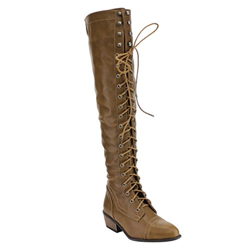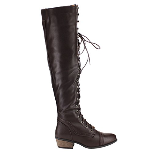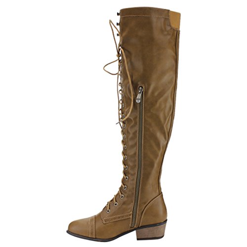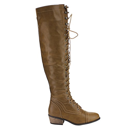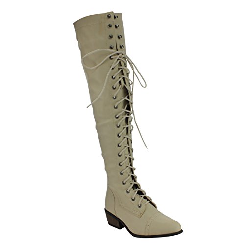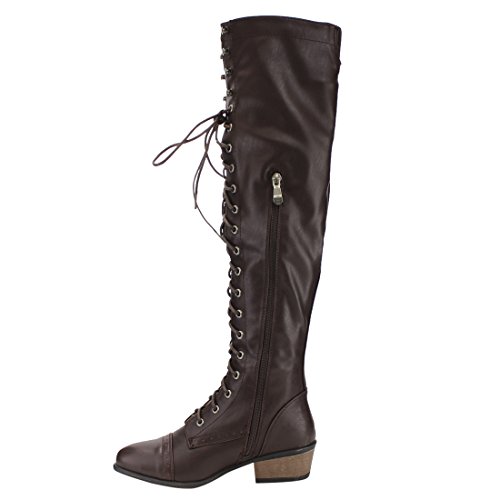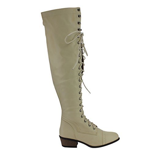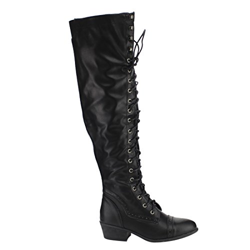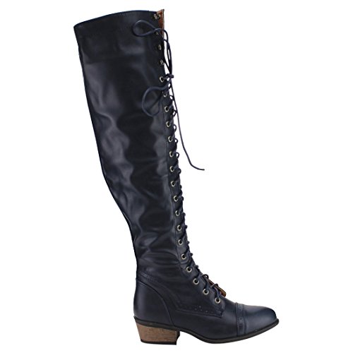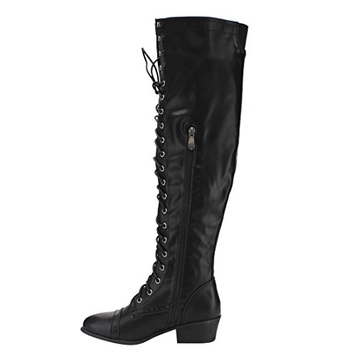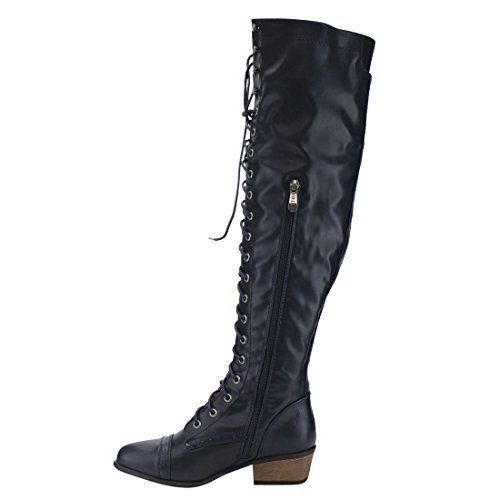 Product Description This faux leatherette combat boots is designed with an over the knee high rise, lace up front, and block heel. Also designed with a long side zipper for easy slip on and off. Ready with these lace-up over the knee high boots will keep you in style. 0