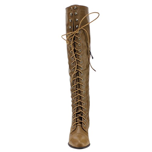 Beston DE11 Women's Lace Up Block Heel Side Zip Over The Knee High Combat Boots