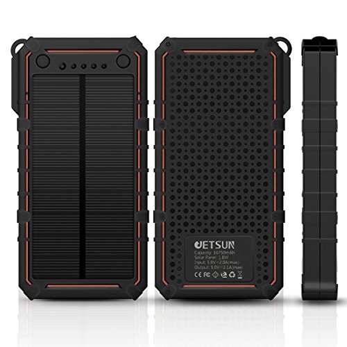 -. Title : JETSUN Solar Charger 16750mAh Waterproof Portable Power Bank External Battery with Fast Charge 2-Port Dual USB Backup Battery Pack