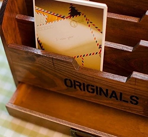-. Title : ビンテージ風 ナチュラルな 木製 引出し付き 小さめ マガジンラック オシャレ雑貨