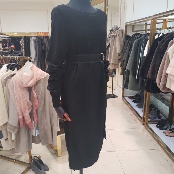 벨트로 포인트연출이 되는 니트원피스 디자인입니다.