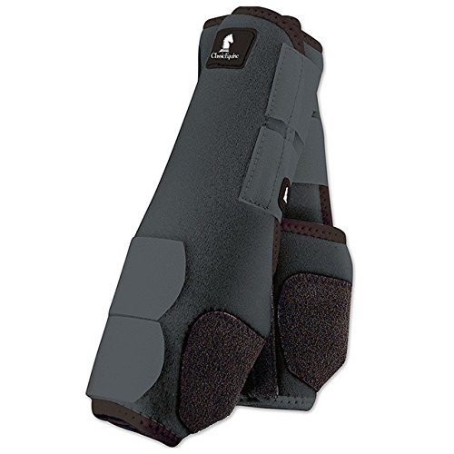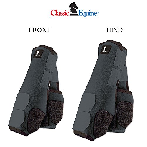 Studio : CLASSIC EQUINE Publisher : CLASSIC EQUINE Binding : Misc. Product Description Made of 100% virgin perforated neoprene that allows the leg to breathe and heat to escape so your horse's legs stay cooler. A round cut box stitched hook-and-loop attachment with an aggressive closure makes the Legacy more secure. A shock absorbing splint pad gives maximum protection to the splint bone, tendons, and other soft tissues. The refined splint pad guards against crossfire injuries and allows for a closer, cleaner fit. A suspensory rib is positioned between the tendon and the cannon bone to ensure proper boot alignment. A patented Cradle Fetlock System provides maximum support and protection to the lower limb by a double layer of shock absorbing neoprene. An extended layer of tough, bulletproof material fitted on the cup area ensures durability. A series of fitting darts provides for a clean, close fit. Bound edges help keep dirt and debris out. 0