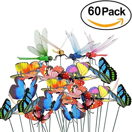 -. Feature : The colorful butterfly stakes and dragonfly stakes are attached to their metal posts by sP.R.Ings, So they sway in the breeze like the real butterfly and dragonfly / PVC material waterproof suitable for both indoor and outdoor,Commonly Used For Decorating; Flower Beds, Plant Pots & Patios,Garden,Home and Party. / VERSATILE: Fill your outdoor garden with these beautiful decorative monarch butterflies. The wings can be extended or closed for different types of display. / SIZE: Each Butterfly 2.8" wide wingspan on 10.3" wires;Each Dragonfly 4.7" wide wingspan on 11.8" wires. / Set of 60 including 50 multicolor butterfly steakes and 10 Dragonfly stakes(3 red,3 blue, 2 green & 2 yellow).60 pack decorative stakes Make your home/garden lively every day,as well Save your money!