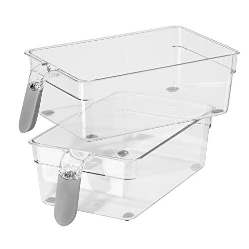 Oggi 5156 Set of 2 Refrigerator and Pantry Clear Storage Bins with Handles ( 11-inch x 6.25 inch x 3.4 inch )
