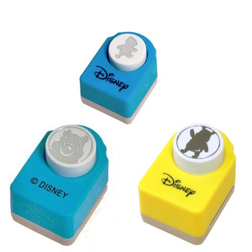 -. Binding : Office Product -. Brand : Disney -. Color : Yellow, Blue -. EAN : 0705332275378 -. Feature : Punched out Winnie-the-Pooh circles are 2cm (.8 inches) for the smaller punch (the one on top) and 2.5cm in diameter (1 inch) for the 2 larger punches (on the bottom) / Paper thickness of roughly two sheets of copy paper can be punched. / Material: zinc alloy, ABS / Put your paper in the slot, punch and you have a cutout of any of the Winnie-the-Pooh images. / Genuine Disney Product -. Label : SUN-K -. Manufacturer : SUN-K -. Model : MG-00014 -. MPN : MG-00014 -. PackageQuantity : 1 -. PartNumber : MG-00014 -. ProductGroup : Office Product -. ProductTypeName : OFFICE_PRODUCTS -. Publisher : SUN-K -. Studio : SUN-K -. Title : Set of 3 Pooh Paper Punches - Disney Products -. UPC : 705332275378