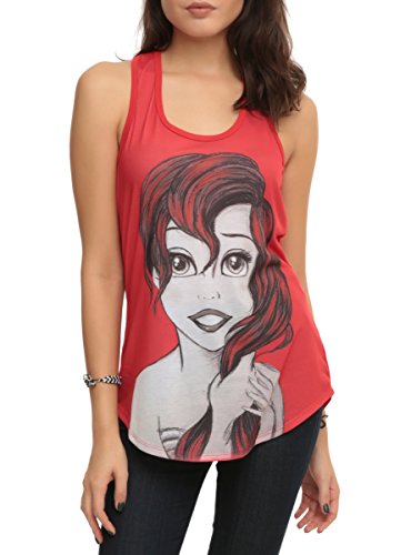 Red racer back tank top from The Little Mermaid with Ariel sketch sublimation print design on front.