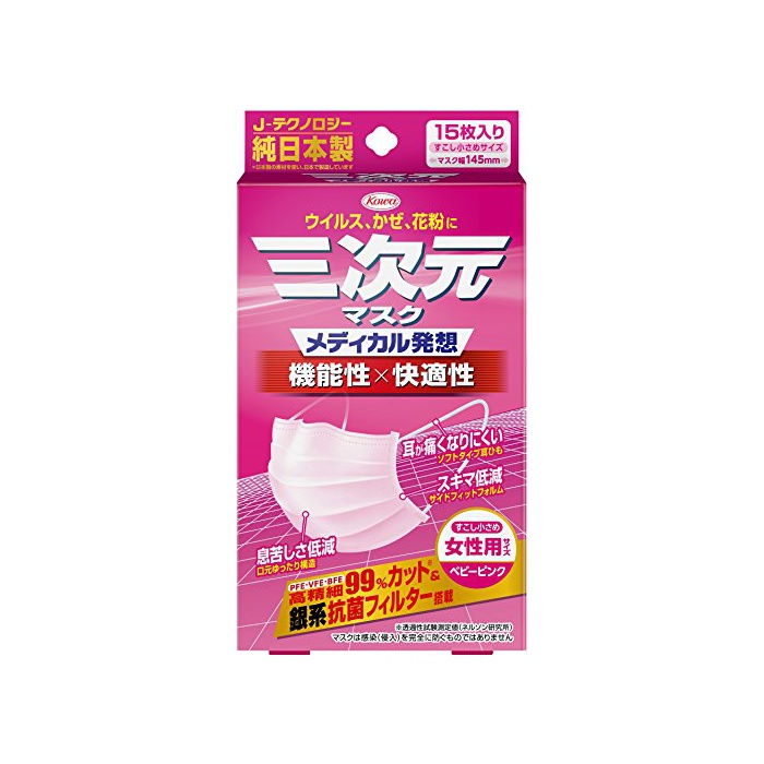 원본상품명: 三次元マスク すこし小さめサイズ 女性用 ベビ?ピンク 15枚入