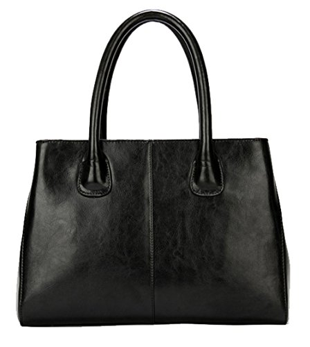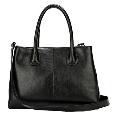SAIERLONG Women's Tote Single Shoulder Bag Cross Body Bag Handbag Black Cow Leather