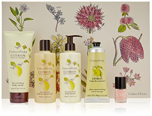 English Honey and Peach Blossom Glistening Face Serum (30 ml), English Honey and Peach Blossom Body Wash (250 ml), English Honey and Peach Blossom Body Lotion (250 ml), English Honey and Peach Blossom Ultra-Moisturising Hand Therapy (100g), English Honey and Peach Blossom Lip Salve (4.2g), English Honey and Peach Blossom All-Purpose Balm (14g), English Honey and Peach Blossom Body Butter (250g).