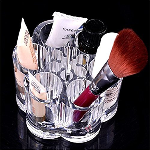 iLory Transparent Acrylic Flower Style Cosmetic Organizer Makeup Brush Holder Lipstick Pen Pencil Display Stand with 12 Slot Spaces for Desk