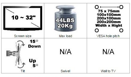 -. Binding : Electronics -. Brand : Eagle Electronics -. EAN : 0634145964660 -. Feature : This ceiling TV mount is for 10" to 32" size LCD or LED. The 28" to 45" inch adjustable length pole is the ideal length for most installations such as retail stores, classrooms, and healthcare facilities. / Ceiling plate angle is adjustable up to 90 degrees. Installation on a cathedral ceiling is no problem with this ceiling TV mount. TV mount bar is also adjustable +5 / - 15 degrees to the pole. / For 10 to 32" screen size LCD or LED TV Note: Supported screen size is provided as a reference only. Please check bracket dimensions above, and make sure overall bracket size does not exceed TV / Pole length: 28" to 45" adjustable / Tilt angle: 5 degree up ~ +15 degree down -. Label : EAGLE ELECTRONICS -. Manufacturer : EAGLE ELECTRONICS -. Model : na -. MPN : na -. PackageQuantity : 1 -. PartNumber : na -. ProductGroup : Speakers -. ProductTypeName : AV_FURNITURE -. Publisher : EAGLE ELECTRONICS -. Studio : EAGLE ELECTRONICS -. Title : Flat TV Ceiling Mount Adjustable Pole Angle 10"~32" Tilt, BCEM237S1 -. UPC : 634145964660