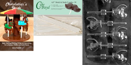 Cybrtrayd 'Small Turkey Lolly' Thanksgiving Chocolate Candy Mold with 50 4.5-Inch Lollipop Sticks and Chocolatier's Guide