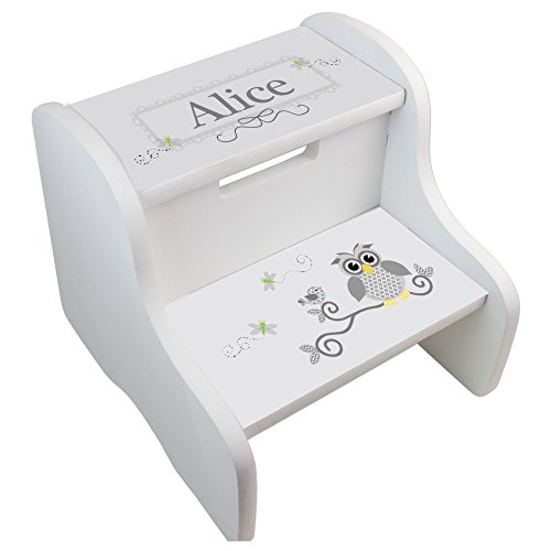 -. Title : Personalized Gray Owl White Two Step Stool