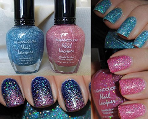 2 Colors Holo Blue & Pink Kleancolor Nail Polish Holographic Glitter Set