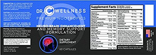GOT BRAIN POWER ? NEUROLOGIST RECOMMENDED PREMIUM NOOTROPICS. This Neuro Booster supplement helps by improving mental clarity and focus, boosting intelligence levels, memory function, and increasing your level of concentration and alertness. As an added bonus, this Neuro Booster formulation can provide you with an increased level of energy and improved mood. *Do you feel sometimes like you are only half-there in your daily conversations because you lack concentration, or mental focus? *With use of this Brain Enhancement formula you will no longer be wondering if the people conversing with you realize your lack of mental focus as you interact. * Neuro-Brain Enhancement Formula Benefits improves mood, boosts memory function, raises intelligence levels, increases physical energy, Improves mental clarity. Boosts ability to focus, Improves concentration, increases level of alertness. The proprietary ingredients of this Neuro Boost improve the functioning of the mind and body in several ways. *One ingredient, dimethylaminoethanol is responsible for improving mood, boosting the function of the memory, raising intelligence levels, and increasing physical energy. Another, L-glutamic acid, works to improve mental focus and concentration. Made in USA in a FDA and GMP Certified Facility. Dr.C Wellness believe in the potential of health supplements to enhance a fit and active lifestyle. Whatever your age or ability, in our experience, high quality health supplements can enhance your quality of life. We want our supplements to be accessible to people as an affordable part of an everyday budget.Feature