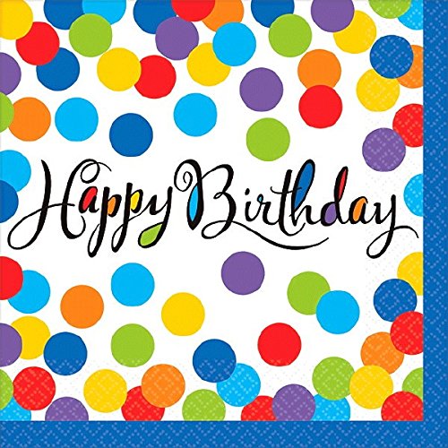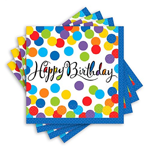Confetti Surprise Birthday Party Beverage Napkins Tableware Paper, 5" x 5", Pack of 36