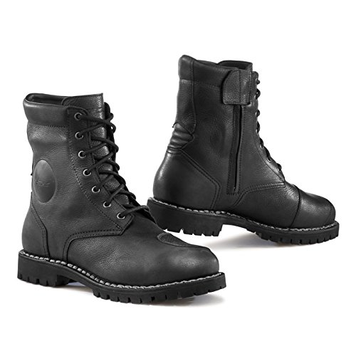 TCX Hero Urban GORE-TEX Motorcycle Boots UPPER: Full grain leather, vintage look LINING: GORE-TEX Performance Comfort Footwear REINFORCEMENTS: Toe and heel counter, malleolous, leather shift pad FOOTBED: Anatomic and replaceable CLOSURE: Lacing system lateral zip and Velcro band SOLE: Sole with specific tread to offer a superior grip on any terrain. Ideal construction technique CODE: 7295G Gore-Tex Membrane This fine material has important features such as long-term waterproofing capacity, excellent resistance to the most extreme temperatures and high resistance to wear and tear. The special microporous structure of the GORE-TEX fabric in expanded PTFE contains around 1.4 thousand million microscopic pores per square centimetre. These pores are approximately 20,000 times smaller than a drop of water, but 700 times larger than a molecule of water vapour. So while water cannot penetrate the GORE-TEX membrane in liquid form, sweat (water vapour) can easily evaporate. This results is a completely waterproof barrier that means the boot can be used in all climates, guaranteeing maximum comfort and optimal breathability. GORE-TEX PERFORMANCE COMFORT MEMBRANE ? Durably waterproof and breathable ? Optimized climate comfort for moderate conditions ? Moderately insulating for nominal heat retention