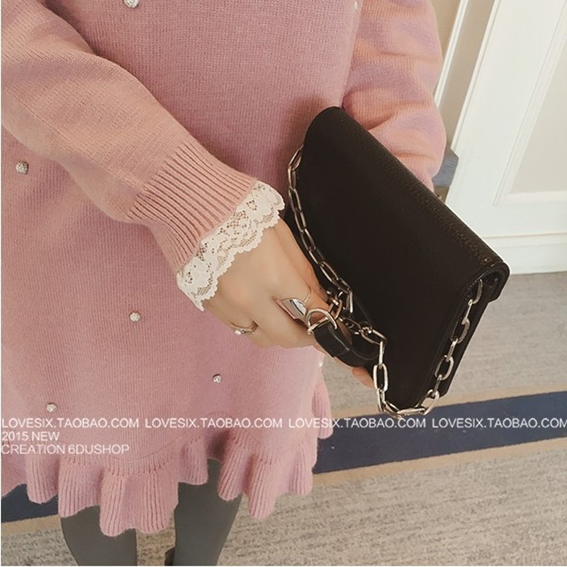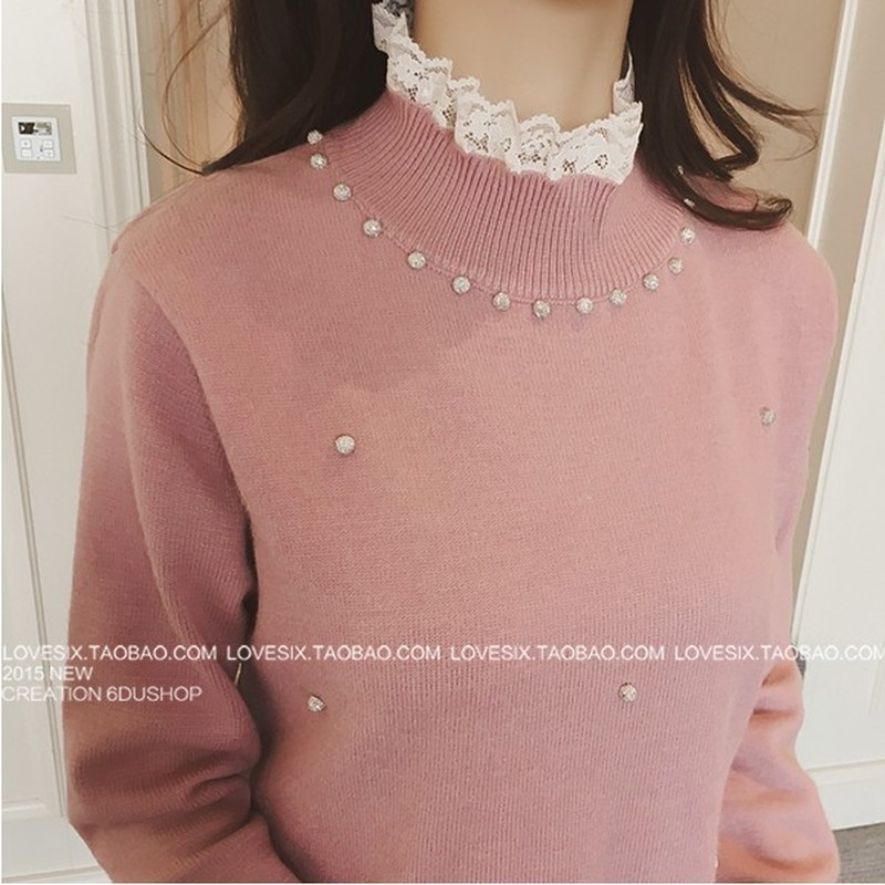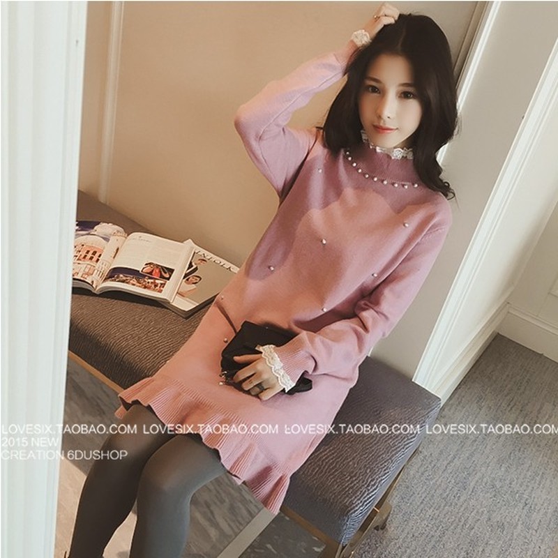 袖口、首元、裾にレースがあしらわれた エレガントなニットドレスワンピース♡