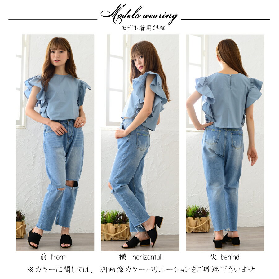 袖のボリュームあるフリルが女の子らしいデザインポイントです。
