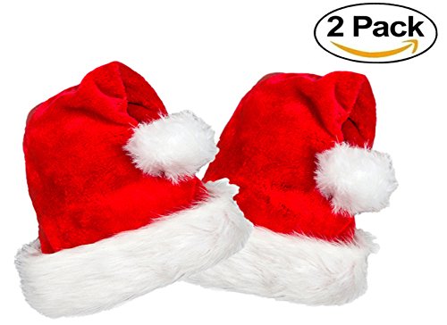 2 Pack Plush Santa Hat, Traditional Red and White Plush Christmas Santa Hat for Chirstmas Party, Adult size