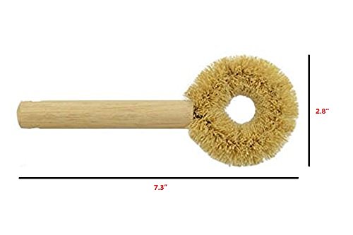 Ergonomic design for a comfortable grip, all natural scrub brush, natural ez grip wood handle. The handle is about 4 1/2" long.