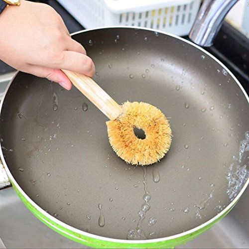 Round head with densely packed, stiff bristles. Ideal for scrubbing pots, pans, dishes and more.