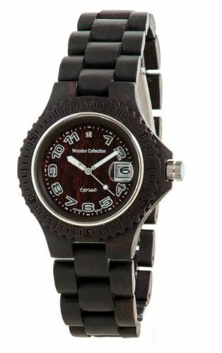 This Tense Wood Watch is part of our Discovery Compass series and is made in dark sandalwood with arabic numbers at all positions with date window at the 3 o'clock position with dark wood face. Made of natural wood, and handcrafted. Sizeable to fit all. All wooden bracelets are hypo-allergenic so stainless steel is used for clasp. Unique Natural, Elegant, and becomes more glamorous and richer in color the more you wear it. Its feather - like weight is what makes it very comfortable on the wrist. Every watch is unique and one of a kind since wood is variable with each being slightly different. Adjustable with very small screwdriver and comes with directions or take it to your nearest watch shop. Care of watch is considered the same as other wood products. Extreme weather changes or extreme elements of any kind can hurt the wood. Comes with 24 month warranty. Warranty shall be void if not registered within 30 days from date of purchase. Comes in classy wood looking box, with watch pillow, warranty registration information, and directions for care. Information also includes wood types and care and maintenance instructions.Feature