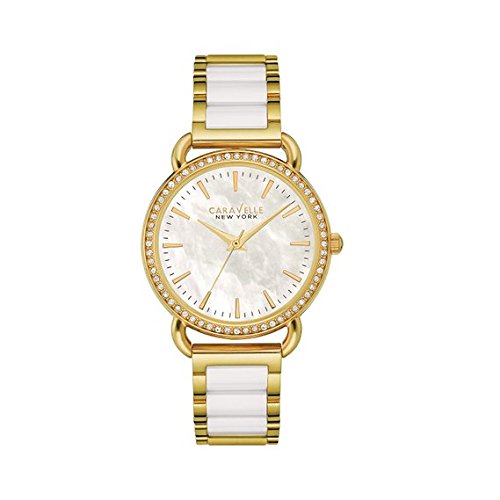 -. Title : Caravelle by Bulova 44L172 Ladies' New York White Ceramic Gold Tone Watch