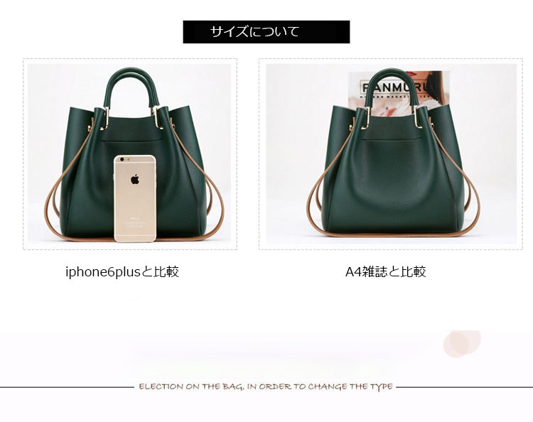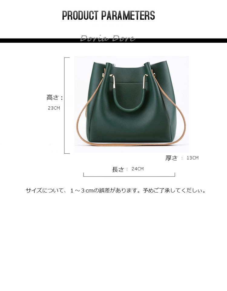 商品番号:WA010商品説明:◆伸縮性:有り◆厚さ:普通◆素材:PU、ポリエステル、金属◆バッグのサイズ:長さ:24cm約 高さ:23cm約 厚さ:13cm約 ストラップの長さ:70cm約◆色:レッド、ライトグレー、ダークグリーン、ブラック◆重量:500g約◆商品内容:1xバッグ特徴:【大容量、使用便利】サイズが大きいです。化粧品や、スマートフォンや傘などの日常用品はすべて入れます。出掛けに最適!!【ファッションなデザイン】欧米風な純色のファッションのバッグなので、通勤や通学にも適用します!!【多彩な色】四種類な色を選択可能です。簡単的にファッションなデザインのカバンです。おすすめです。