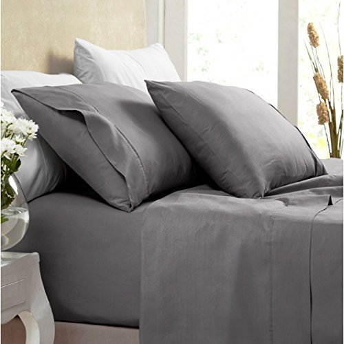 LUXURIOUS Egyptian Bedding 1800 Collection Superior Hotel Quality Wrinklefree Brushed Microfiber Bed Sheet Set ( TWIN, GRAY ), classic 3 line Embroidary pillow cases, 5 Year FULL Warranty