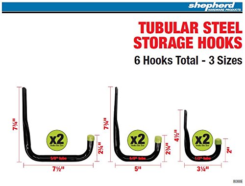 Shepherd Hardware 8088E Heavy Duty Steel Garage Storage / Utility Hooks, 6 Pack