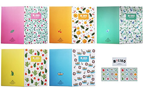 Miliko A5 Color Series Softcover Notebook/Journal/Diary Set, 5 Unique Design 8mm Ruled Notebooks per pack-50 Sheets/100 Pages