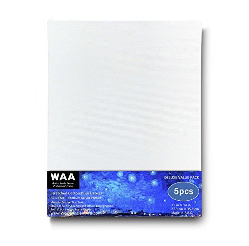 11 x 14 inch Acid Free Artist Stretched Canvas, Luxury Made Affordable! 100% Cotton Triple Titanium Acrylic Primed, Pack of 5, By World Ancient Arts