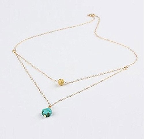 -. Title : Mokingtop® Street Style Womens Water Drop Turquoise Pendant Multilayer Necklace Silver