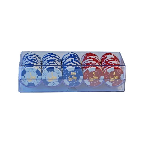 Wood Expressions Stripe 100 Clay Poker Chips with Poker Suits in Lucite Box
