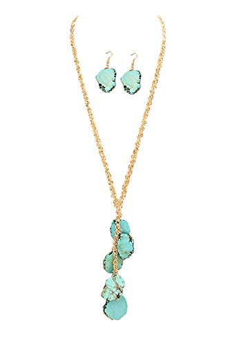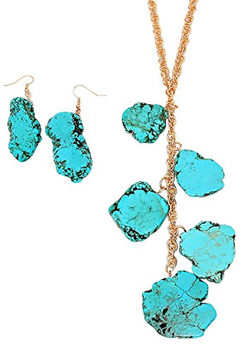 -. Binding : Jewelry -. Brand : Rosemarie Collections -. Department : womens -. Feature : Stunning P.R.Ince of Wales chain in gold tone with turquoise stone charm dangles / Matching dangle french wire earrings, 2.5" length / Necklace length 29" with 3" extension, Decor 6" length / Note: Due to the nature of the natural stone no two sets are exactly alike and may have slight variations from the sample pictured / Packaged in a lovely gift box -. Label : Rosemarie Collections -. Manufacturer : Rosemarie Collections -. Model : SW-1097-93XX -. MPN : SW-1097-93XX -. PartNumber : SW-1097-93XX -. ProductGroup : Jewelry -. ProductTypeName : FASHIONNECKLACEBRACELETANKLET -. Publisher : Rosemarie Collections -. Studio : Rosemarie Collections -. Title : Rosemarie Collections Women's Long Statement Necklace Earrings Set Semi Precious Turquoise Stone Charms