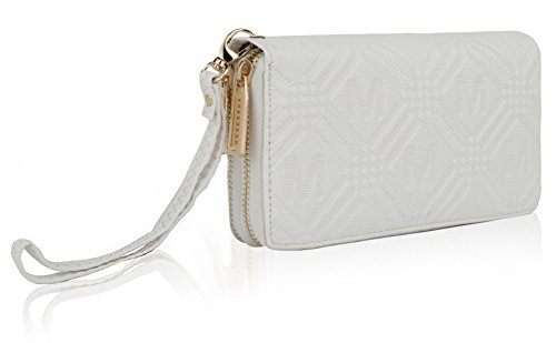 -. Feature : This designer wristlet is part of the MKF Collection by Mia K. Farrow, carrying this remarkable wristlet for women ensures prompt style. This woman designer wallet is made of high quality faux leather with fabric, fabric lining giving it durability for long lasting use. The exterior of this designer wallet tops off its style with luxurious gold tone hardware and double zipper closure. / Carrying this gorgeous woman designer wristlet ensures you instant style with your favorite outfit! It will sure make heads turn as well. No matter where you are standing with our MKF Collection designer handbags and designer wristlets will help boost up your outfit. / This designer women wristlet exterior features an extravagant M embossed detail and two separate zippered compartments. The interior of this stunning women designer wallet features multiple card and cash slots, including a unique compartment for a picture wallet. This wristlet has multipockets, you know you can never go wrong with extra space whether is in a wristlet or any women handbags. / This designer wristlet has a removable wrist strap that is 6 in long giving you the power of wearing it as a stylish wristlet or as a stylish wallet depending all in your mood and outfit, the approximate measurements of this beautiful woman designer wristlet are the following 4 in H x 8 in W x 1.5 in D / Striving to carry an attractive companion? Then snatch this beautiful woman designer wristlet. It has been designed in a unique style that makes you look truly incredible and attractive. So now stroll the streets with pride carrying this beautiful woman designer wristlet since this fashionable and attractive designer wallet ensures you to approach as a beautiful woman!