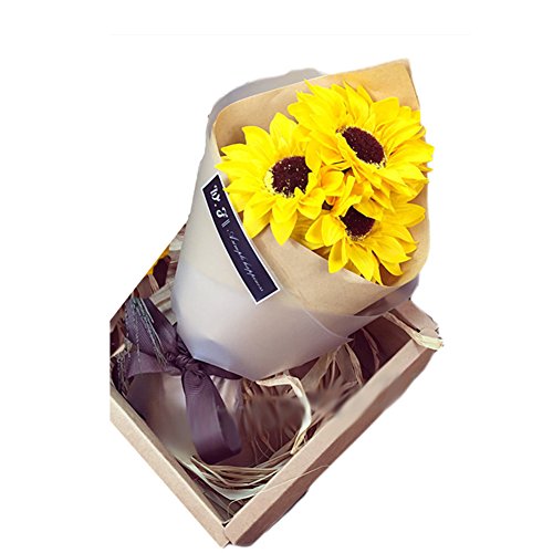 Yzakka 3pcs Flowers Artificial Bouquet Handmade Soap Decoration Gift for Wedding Valentine Day Birthday, Sunflower