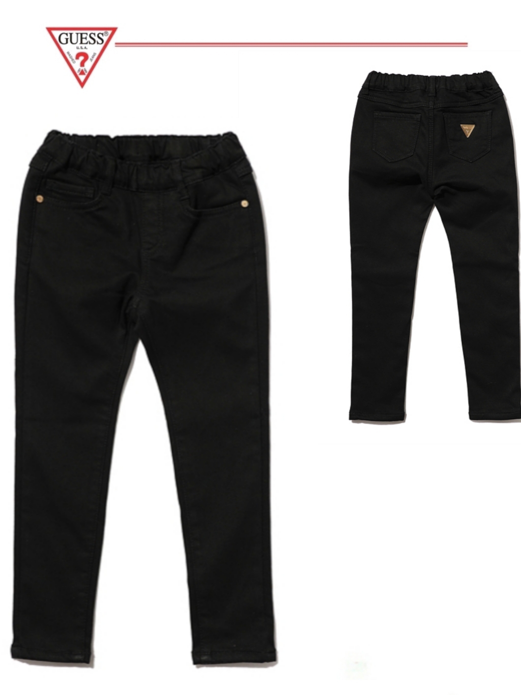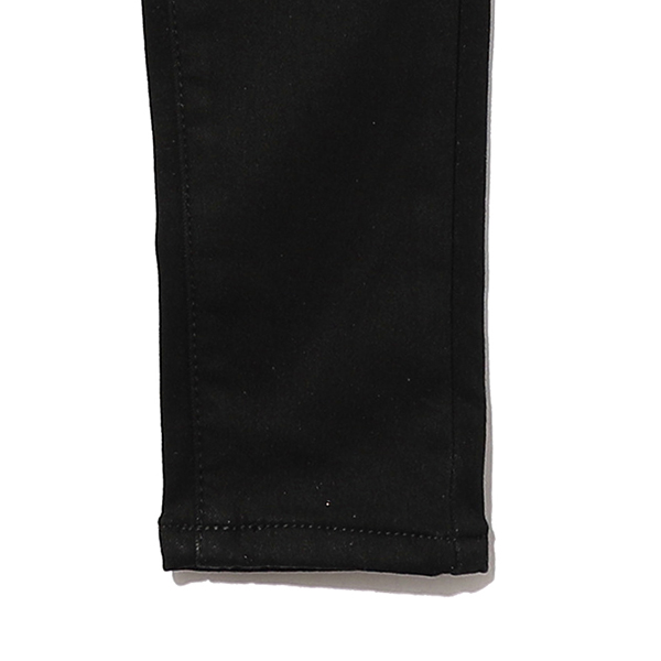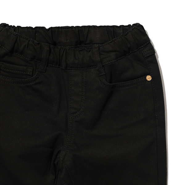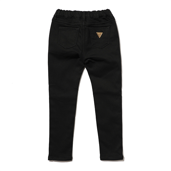 -여아 블랙 본딩 스키니진입니다. 본딩이 된 기본 스키니핏 데님팬츠입니다. 자연스러운 캣브러쉬 워싱과 뒤포켓의 골드컬러 금속 장식으로 포인트를 주었습니다.
